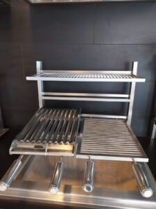 Equipado com 1 coluna e 3 travessas com 3 níveis para grelhas ou espetos, de acordo com a carne você tem níveis diferentes de altura, garantindo a temperatura ideal do churrasco.