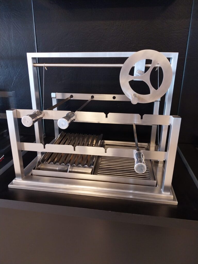 Equipada com volante ou manivela lateral elevando ou baixando as grelhas, para que você controle a temperatura do seu churrasco. Agora seu churrasco vai ficar profissional com estes equipamentos.